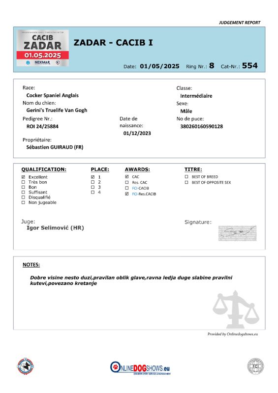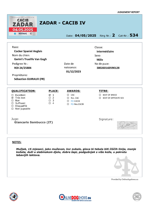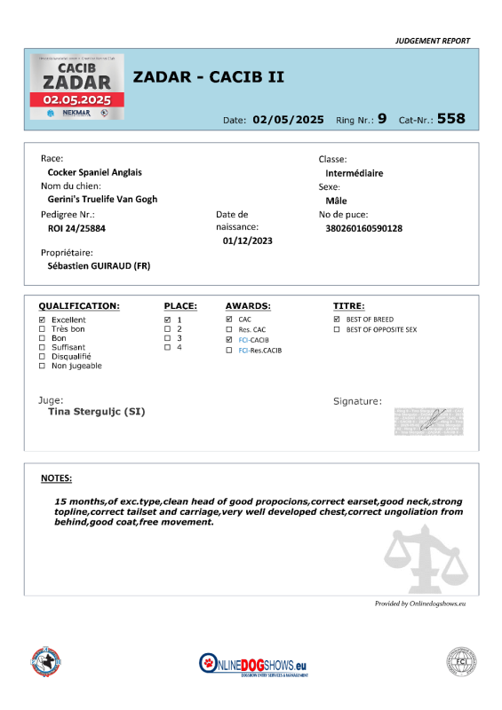 - - CACIB Zadar 2025 (Croatie) : 1er Excellent classe Intermédiaire, 3xCAC, CACIB