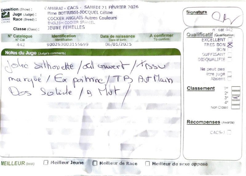 - - Amiens 2026 : 2x 1er Excellent classe Jeune, CACS-J, Meilleur Jeune